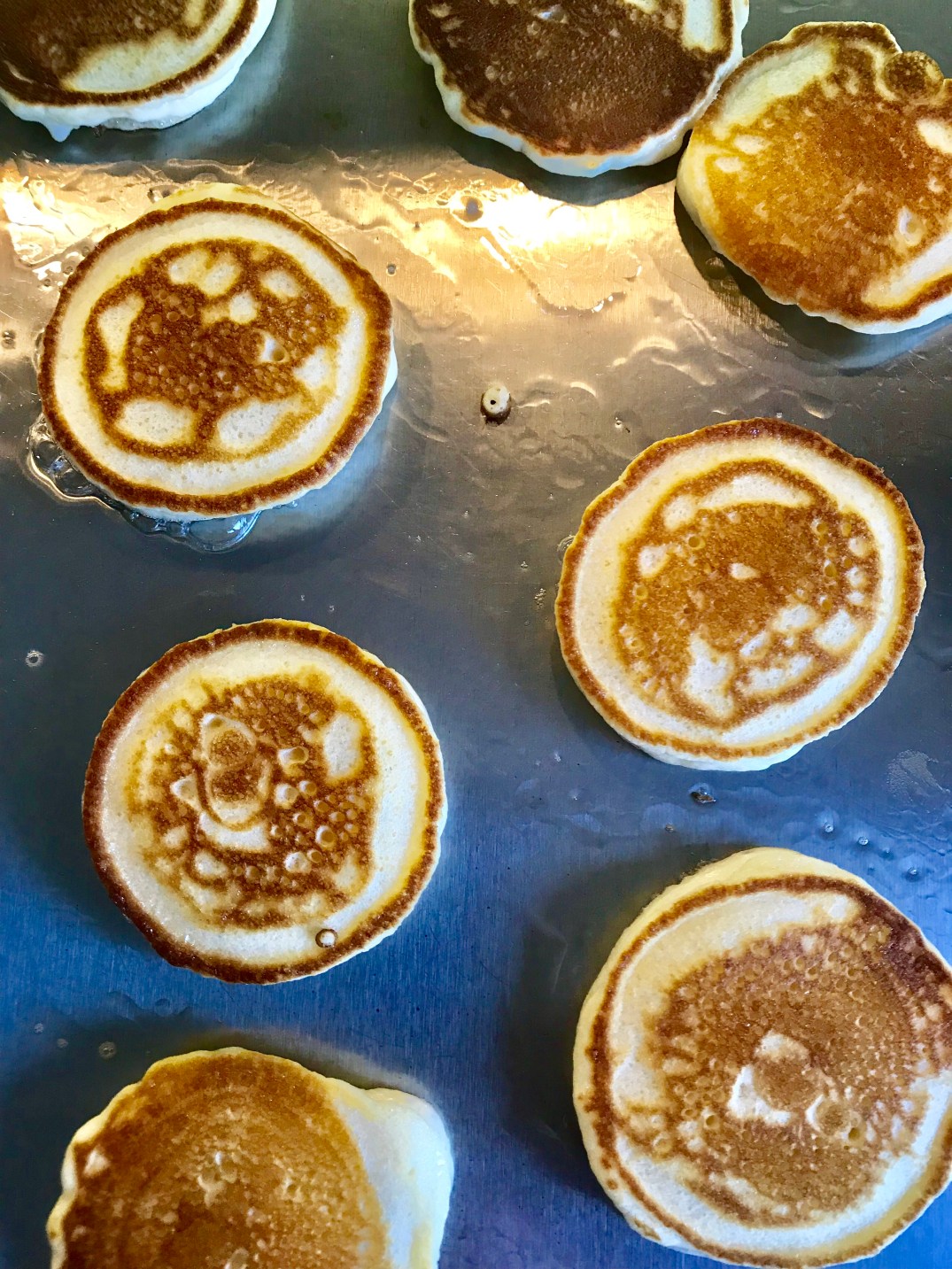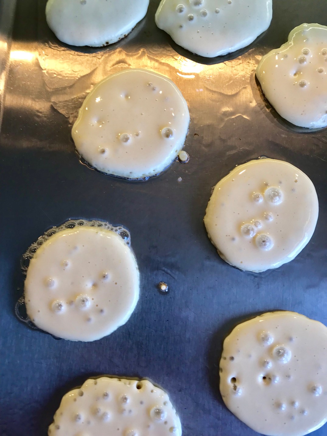Öl erhitzen. Teig in der gewünschten Größe in die Pfanne geben. Wenn er blasen bildet wenden, kurz fertigbacken.