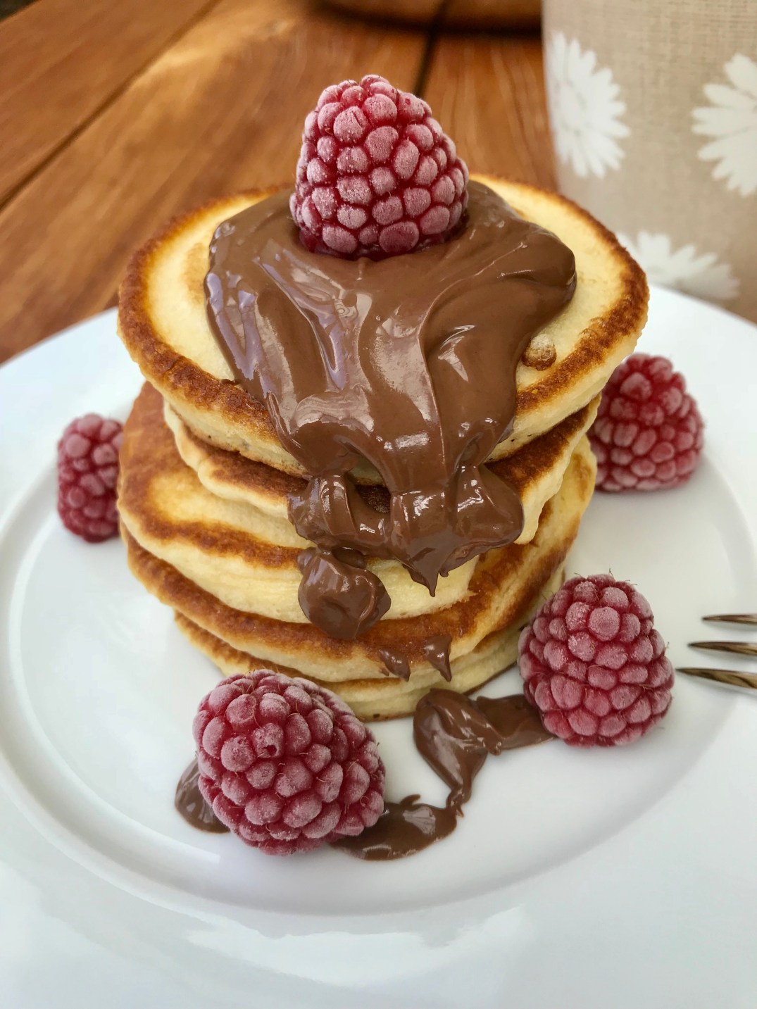 Lust auf was Süßes zum Frühstück? Fluffig Pancake mit Nutella und Himbeeren! Geht superschnell und ist sooo lecker 😋 damit sie so schön fluffig werden brauchen sie nur ordentlich „Treibstoff“.