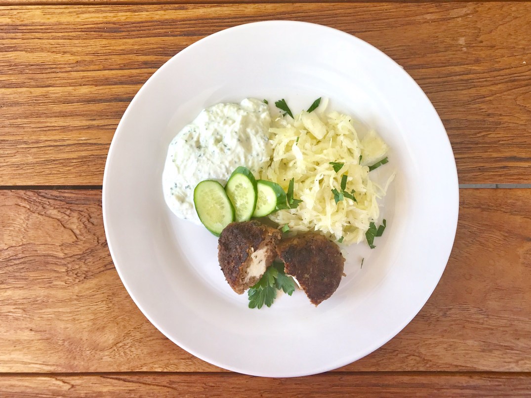 Heute mal ein griechisches Lieblingsgericht. Bifteki – Das sind griechischen Frikadellen, deftig gewürzt und mit Schafskäse gefüllte. Absolut 😋 Lecker! Dazu passt hervorragend ein selbstgemachter Krautsalat und frisches Tzatziki. Das alles selbst zu machen ist natürlich ein bisschen Arbeit. Aber, wenn du einen solchen Satz hörst: „Ich mag keinen Krautsalat, aber den hier habe ich gegessen.“ Dann hat sich der Aufwand doch gelohnt! Nicht wahr, liebe Melissa? 😉