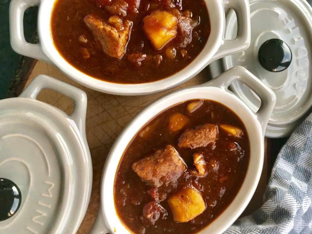 Da unbestritten der Herbst da ist, empfangen wir ihn mit einem herzhaften Gulasch. Heute als Eintopf, in dem alles drin ist, auch mein Grundrezept für Gulasch. Was nicht drin ist sind Zusatzstoffe, künstliche Geschmacksverstärker… 😉 das braucht wirklich niemand. Also, lasst die bunten Tütchen im Supermarktregal liegen und investiert das Geld lieber in ein gutes Stück Fleisch, ein paar frische Kartoffeln und knackige Zwiebeln. Denn da steckt Umami, der gute Geschmack drin. Und wie ihr eure eigenes Umami hinbekommt verrate ich euch auch.