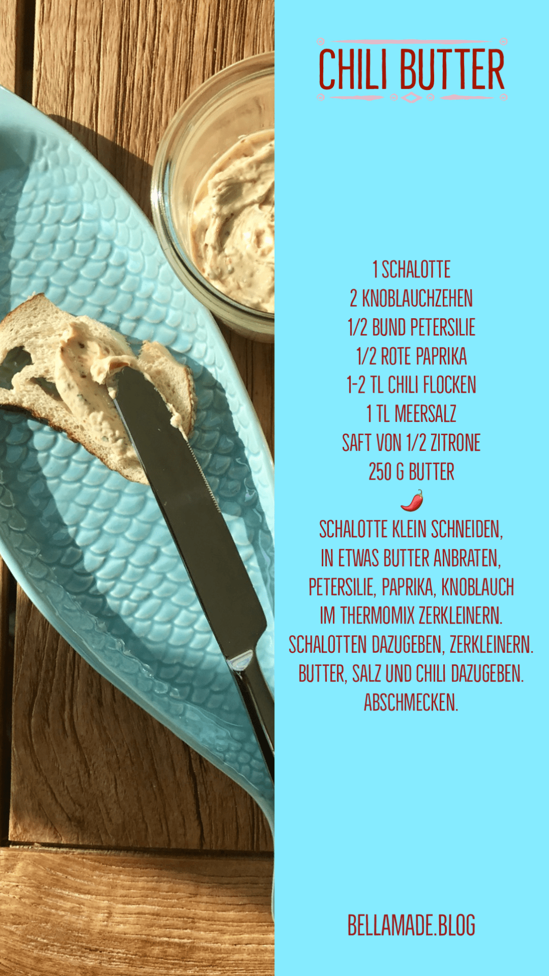 Butter, Salz, Zitronensaft und Chili dazugeben.